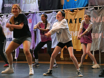 For the day-long Dance-In! ten local dance groups occupy and animate the Guildhall's main hall. Surrounding them are 'protest' banners, lovingly sewn from old shirts (now sold for next to nothing in second hand stores). As a reflection of the gentle power of the original dance-ins we avoided shouty slogans for a more nuanced view, asking our brilliant local dancers what made them happy or sad, filled them with hope or anger, fear or joy. Their answers are the basis for the banners. We see them as both a poetic, group portrait of this amazing, confusing city - and a playful, powerful vision of a better world.”